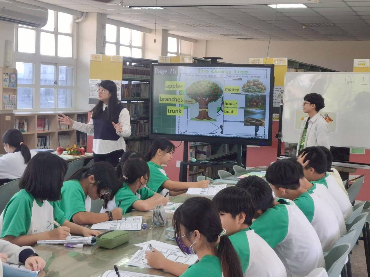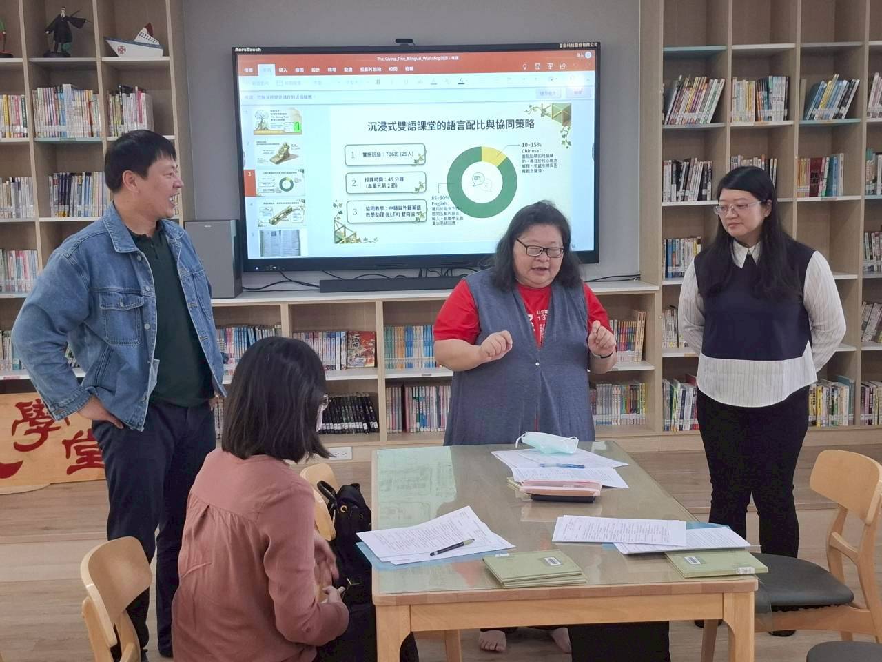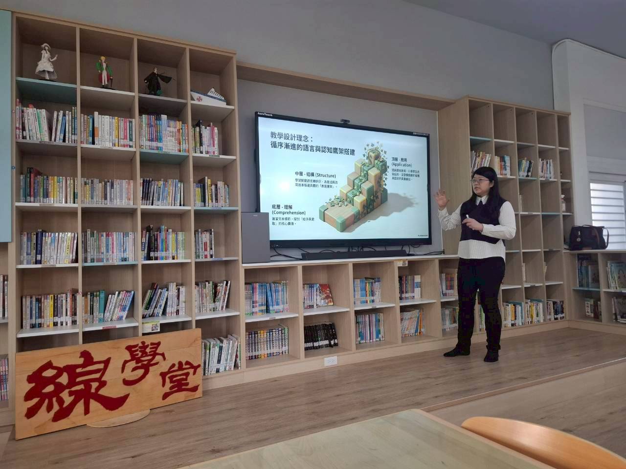 雙語生活化校園計畫縣級公開觀課,由本縣英資中心邀請教授到校指導,將學校閱履寰宇雙語繪本課程,實際操作並邀請各校英語教師蒞校一同參與,從說課、觀課、議課,一起觀察與討論,透過集體智慧,確保每一位學生在課堂中都能獲得有意義的學習。線中推動素養導向教學、雙語教育或數位融入教學,公開觀課是最佳的實踐場域。 本課堂設計:1.前置沉浸式閱讀、2.課堂教師協同讀者劇場、3.繪本主題說明、4.字彙認識與練習、5.學生小短劇、6.教師引導與說明、7.課堂複習與回饋、8.完成閱履寰宇學習手冊。 公開觀課/中師:粘惠鈞老師、外師/Michael