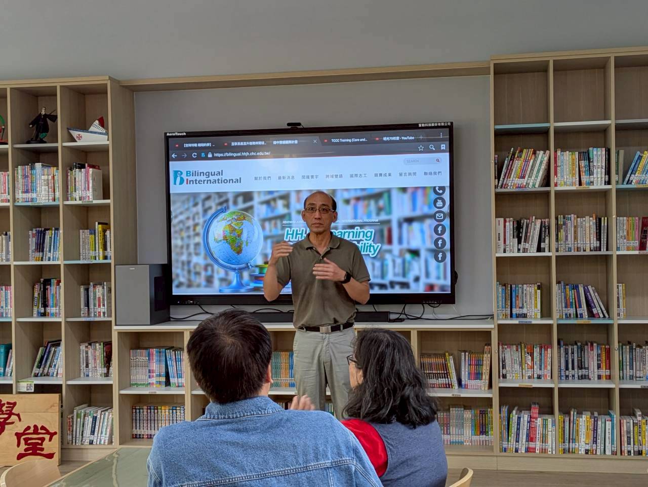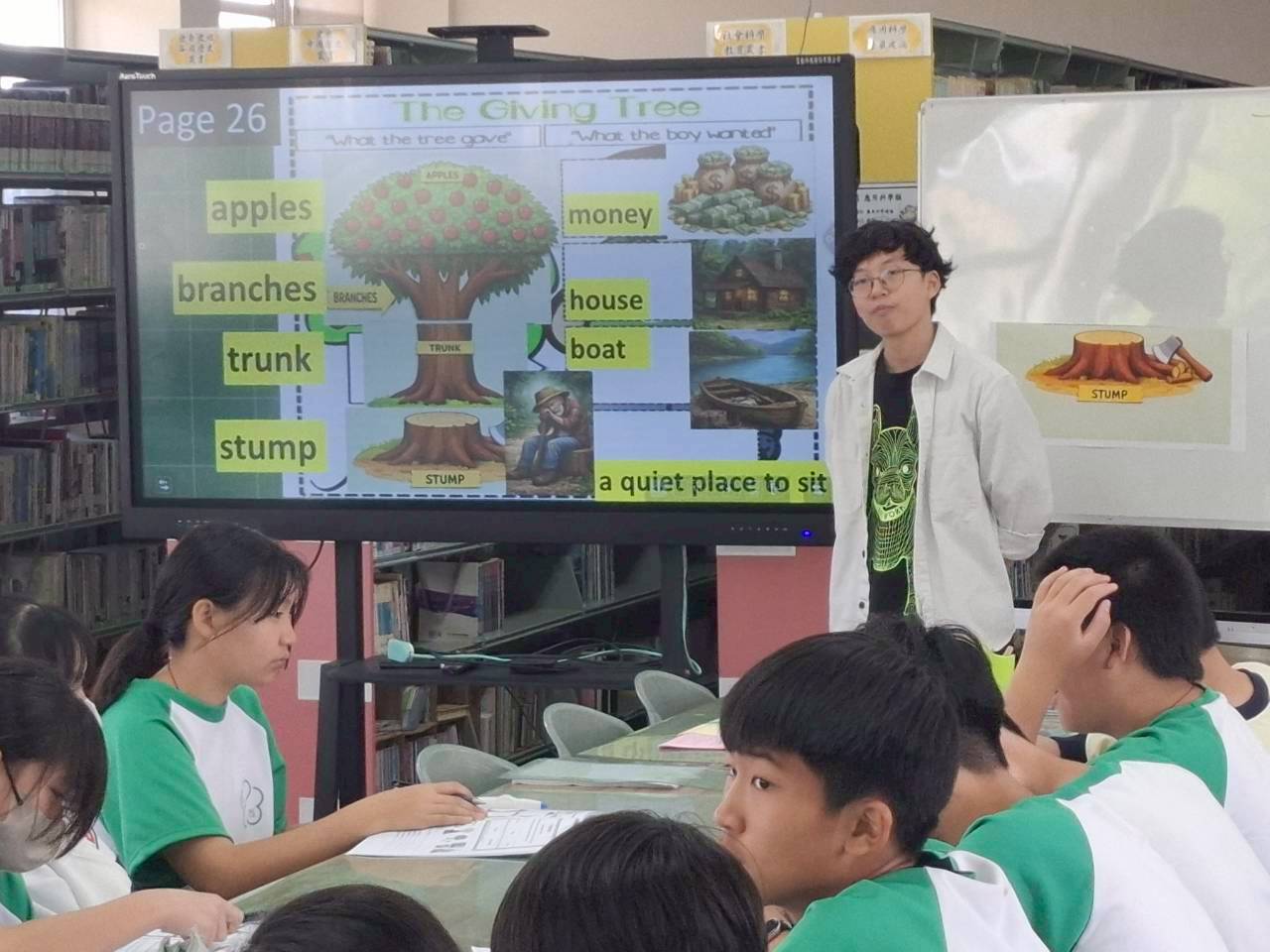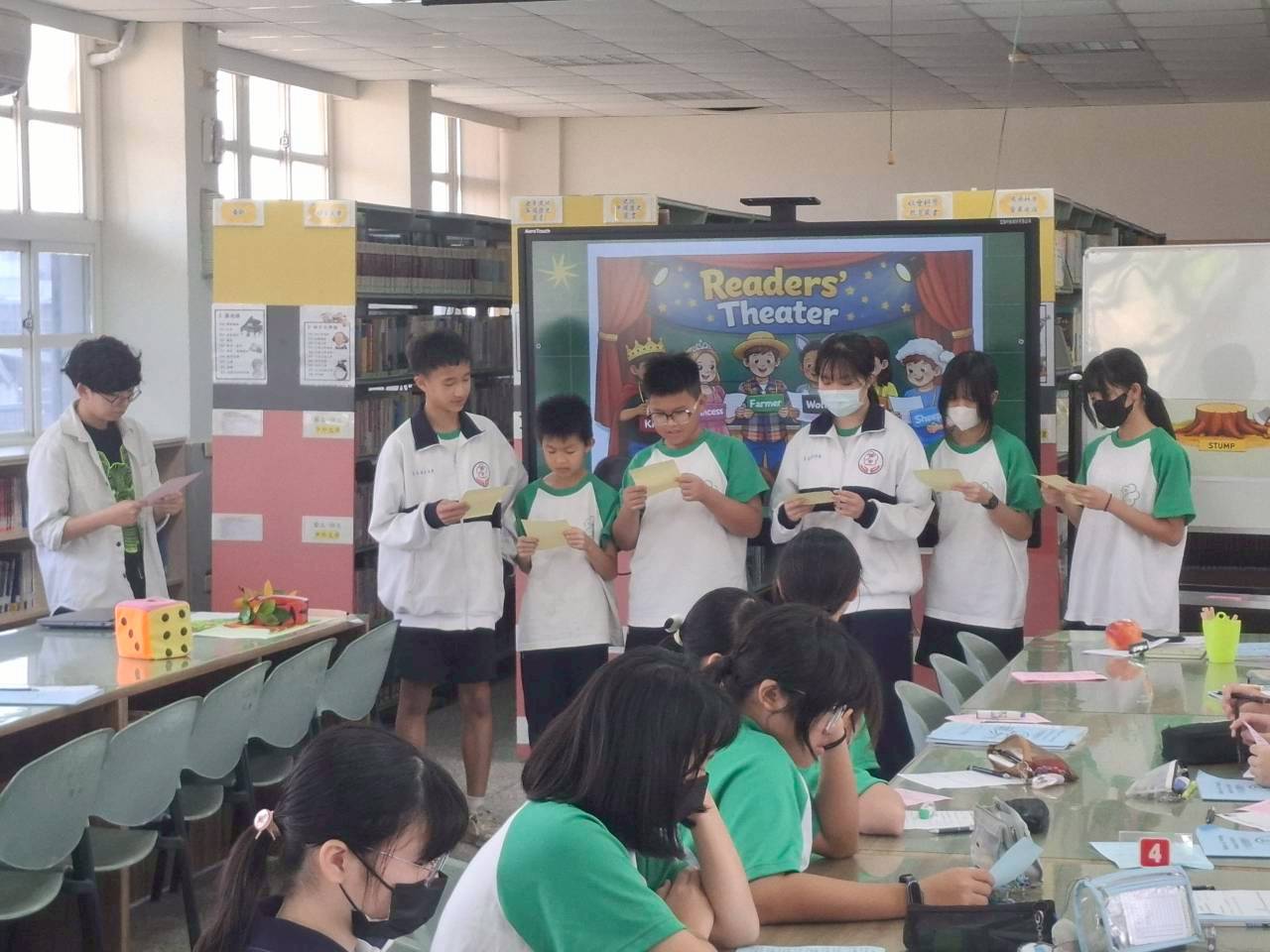 雙語生活化校園計畫縣級公開觀課,由本縣英資中心邀請教授到校指導,將學校閱履寰宇雙語繪本課程,實際操作並邀請各校英語教師蒞校一同參與,從說課、觀課、議課,一起觀察與討論,透過集體智慧,確保每一位學生在課堂中都能獲得有意義的學習。線中推動素養導向教學、雙語教育或數位融入教學,公開觀課是最佳的實踐場域。 本課堂設計:1.前置沉浸式閱讀、2.課堂教師協同讀者劇場、3.繪本主題說明、4.字彙認識與練習、5.學生小短劇、6.教師引導與說明、7.課堂複習與回饋、8.完成閱履寰宇學習手冊。 公開觀課/中師:粘惠鈞老師、外師/Michael